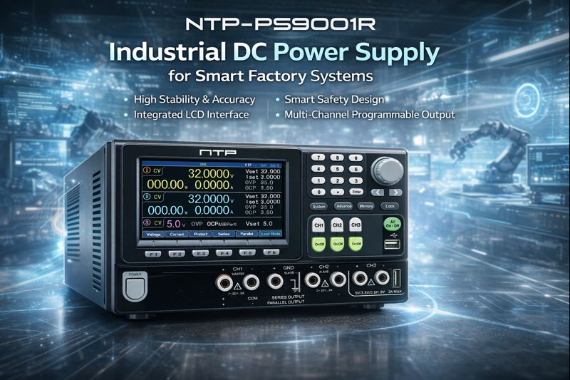 Engineered to deliver stable and accurate power, the NTP-PS9001R supports production systems that rely on consistent electrical performance, such as automation equipment, industrial controllers, and electronic testing workflows.